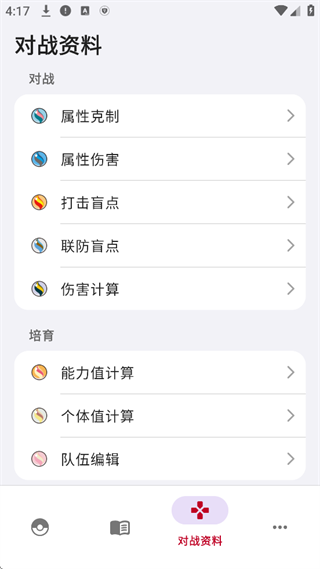 强大:专为对战爱好者设计了「属性克制」「盲点」「能力值计算器」等强大功能。
