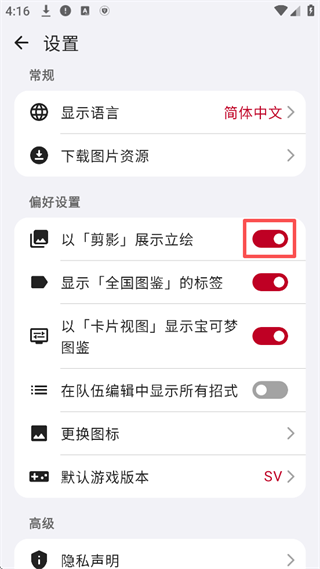 2、关闭【以「剪影」展示立绘】