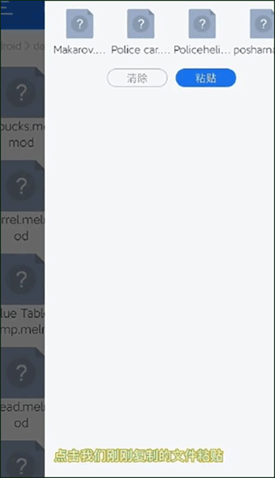 1、在第三方渠道下载好的模组,将文件使用“ES浏览器”打开,然后复制全部模组