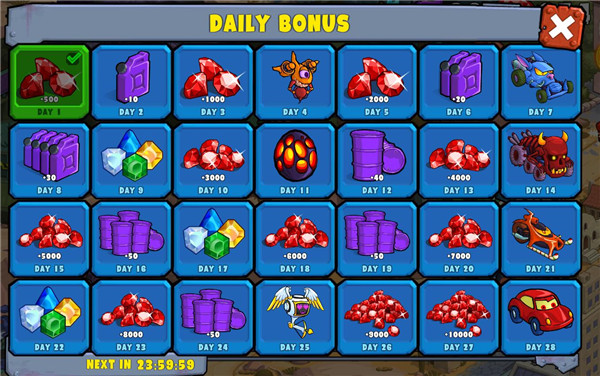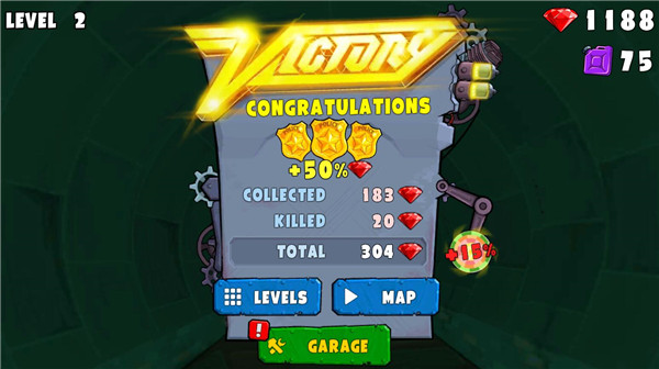 收集硬币,提高汽车的特性和技能,如速度,伤害和涡轮模式。
