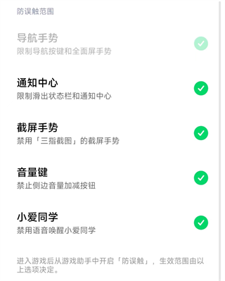 解答:对于防误触范围,默认限制导航手势,可将【通知中心、截屏手势】等其它选项也按需勾选,进入游戏后就会根据该范围展开限制。