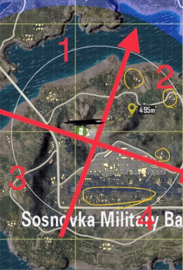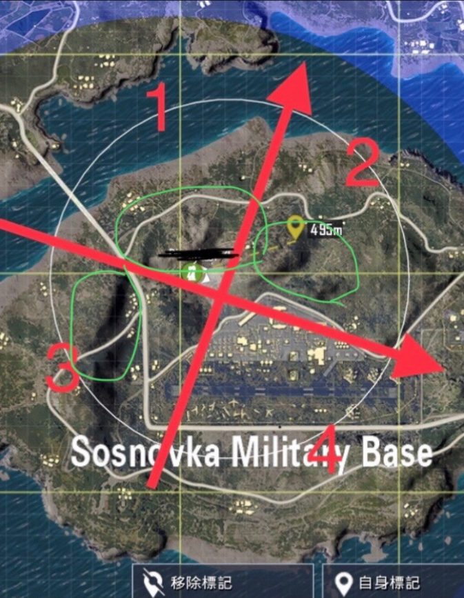 缩圈机制始终是决定胜负的关键因素。在 PUBGM中同样如此。通常在上飞机后 6~7 分钟会出现第一次安全区提示(小地图下方有计时器),范围基本覆盖半个岛