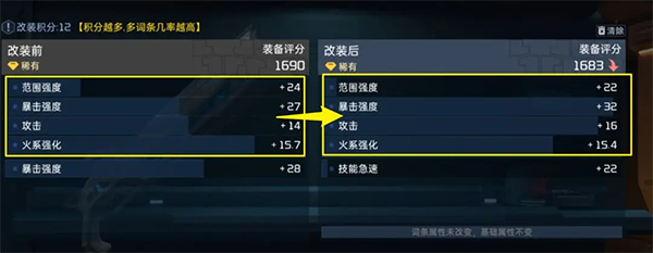 装备改装的随机性过大,想要获得更为极品的词条组合必然需要其他手段协助——属性转移、属性熔炼。
