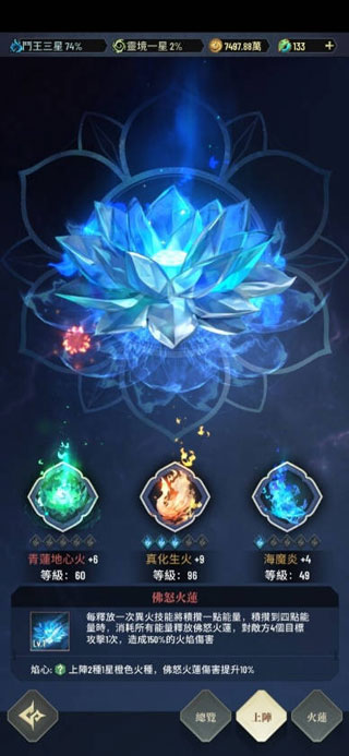 透过解特定任务取得青莲图录,解锁并获得异火,基本上每天都有做满的话在结束前都能拿到海魔炎跟青莲地心火,而异火的升级素材也可以从这获取。