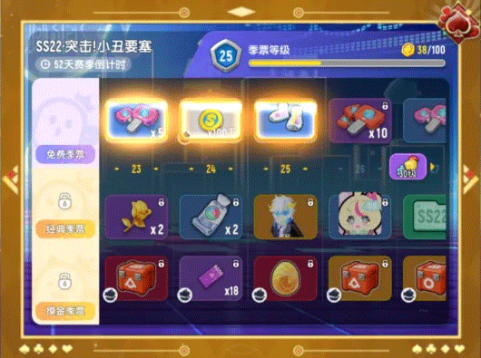 黄金季票一分为二;经典季票&摸金季票在SS22赛季成为二选一互斥季票商品,肠肠可以在经典季票或摸金季票任选其一购买。