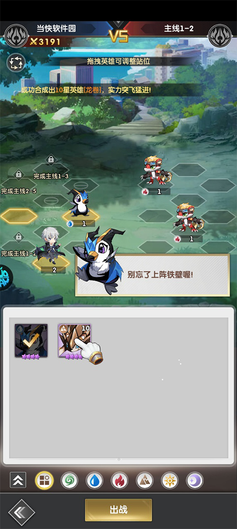 3、在冒险开始前,上阵自己的角色。每个角色之间都有强力的羁绊,可以帮助提升战力