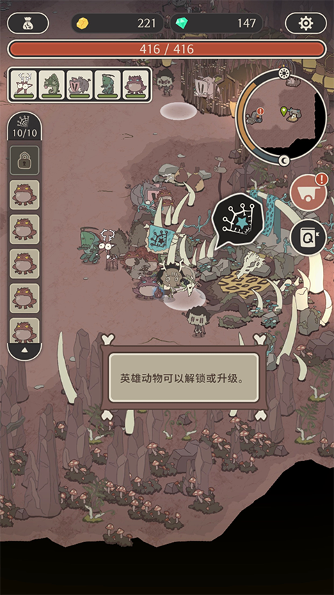 可在这里查看已解锁的英雄动物,并可以查看其ph和atk。