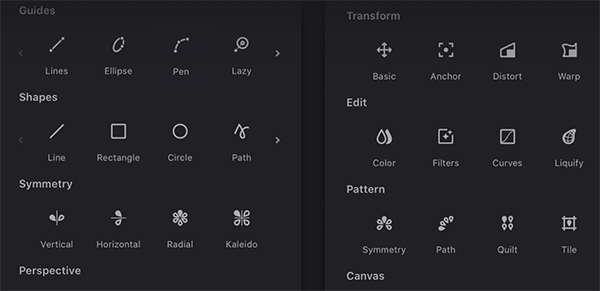 潜入并探索丰富的功能宝库。您会发现熟悉的概念,例如图层、形状和选择工具,以及我们应用程序独有的一些突破性功能。