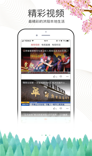 3、提供本地资讯发布、沭阳电视频道及广播频率内容的在线直播和点播观看,立足本地政务和民生服务。