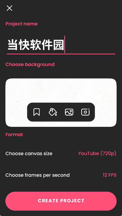 打开软件,点击加号新建项目,可以看到弹出了项目界面,首先填写项目名称,接着是选择背景。