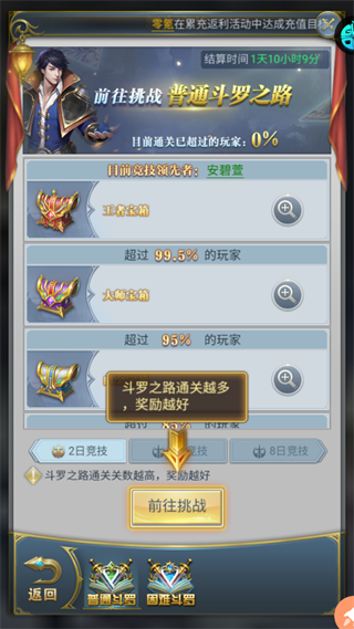 斗罗之路通关关数越高,奖励越好,获得的奖励可以用于提升角色,提升武魂品质