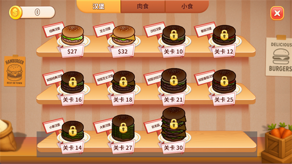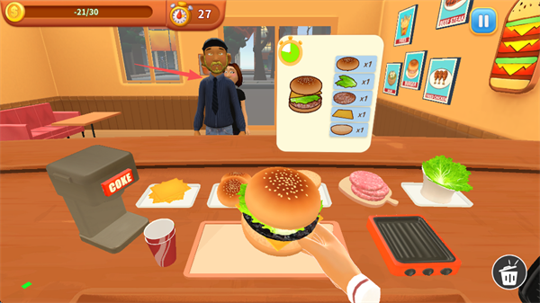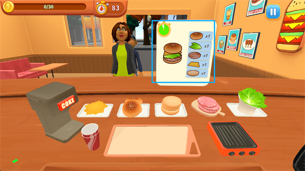 手机版玩法简单,有沙盒模式和关卡模式。制作食物后,点击汉堡递给顾客就能完成订单。顾客满意程度直接影响收入,达到一定条件还能解锁新品。最近的更新优化了游戏内容,体验更流畅。