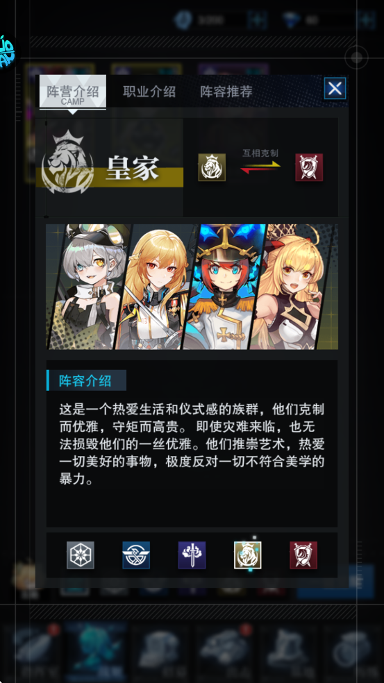 游戏内拥有多个不同的职业,包括防御、进攻、支援、奇袭、机动