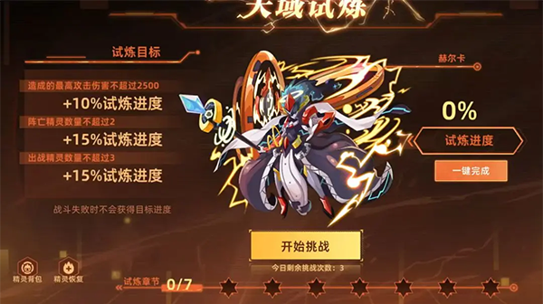 Boss 1:赫尔卡(造成最高伤害不超过2500+10%;阵亡精灵不超过2+15%;出战精灵不超过3+15%进度)