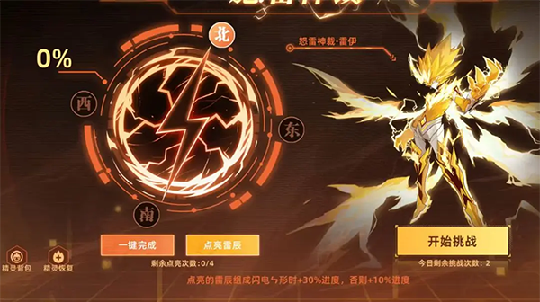全关分为四个部分,分别为【雷鸣初现】、【电锋凝聚】、【天域试炼】、【怒雷神裁】