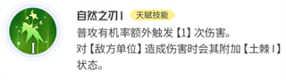 普攻有机率额外触发【1】次伤害。对【敌方单位】造成伤害时会其附加【土棘I】状态。