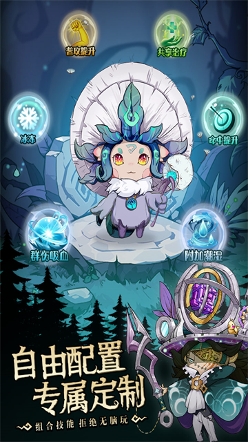 游戏内每个森灵卡牌支持自由配置技能,上百种主被动技能供你选择结合不同森灵卡牌的战斗特点可以搭配出专属于你理解的阵容