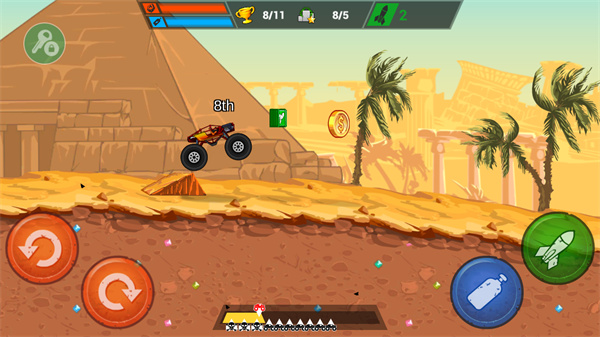 作为一款动作竞速游戏,《疯狂卡车挑战赛》不仅考验操作技巧,还需要策略性地使用道具和击败对手。虽然简单暴力,但关卡设计和道具系统让游戏充满乐趣和挑战性。如果你喜欢刺激的飞车对决和狂轰滥炸的快感,这款游戏绝对值得一试!
