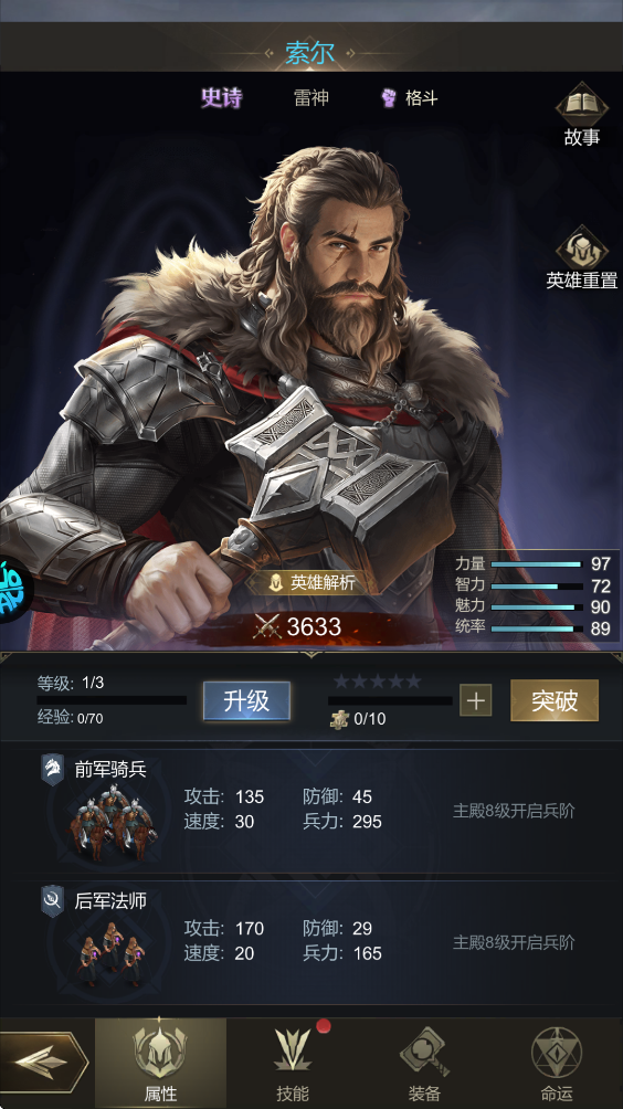 【提尔】与提尔同时上阵,战斗开始时对敌军造成95%的伤害