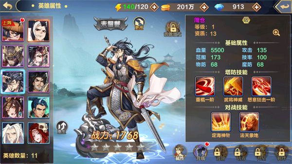 塔防技能(重棍一阶、武将神威、怒意狂击一阶):侧重 “近战爆发 + 攻击增益”,强化单体 / 小范围输出。