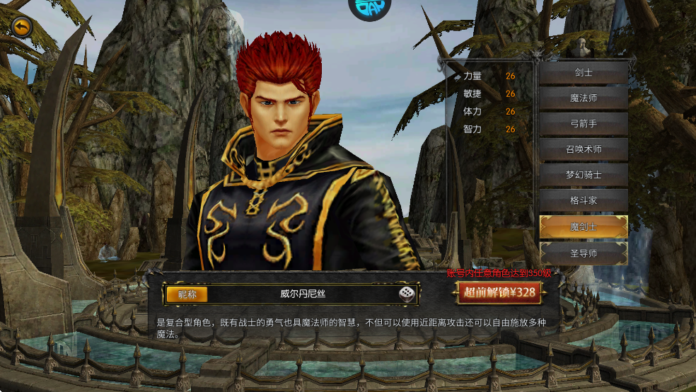 复合型角色,既有战士的勇气也具魔法师的智慧,不但可以使用近距离攻击还可以自由施放多种魔法。