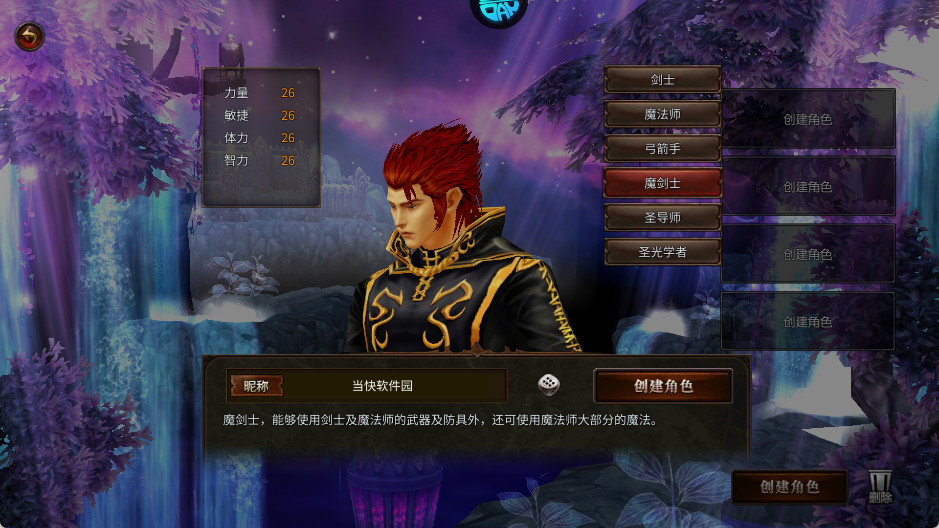 魔剑士,能够使用剑士及魔法师的武器及防具外,还可使用法师大部分的魔法。