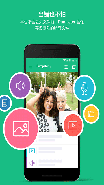 我们都经历过这种情况。当您意识到自己删除了设备上的某些重要文件时,一切为时已晚。不过现在不同了!Dumpster是一款免费的Android数据恢复应用,可以暂时保存所有删除的文件、图片、视频等数据,方便您以后恢复。
