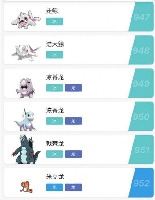 鲸、浩大鲸、凉脊龙、冻脊龙、戟脊龙、米立龙、摩托蜥、布拨、布土拨、巴布土拨、电海燕、大电海燕