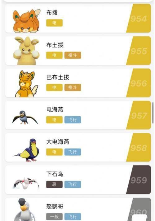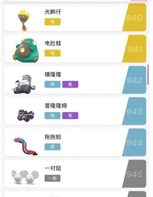 吼叫尾、振翼发、爬地翅、轰鸣月、铁辙迹、皮卡丘、铁毒蛾、铁臂膀、铁脖颈、铁荆棘、铁包袱、铁武者