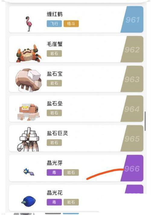 下石鸟、怒鹦哥、缠红鹤、毛崖蟹、盐石宝、盐石垒、盐石巨灵、晶光芽、晶光花、滋汁鼹、涂标客
