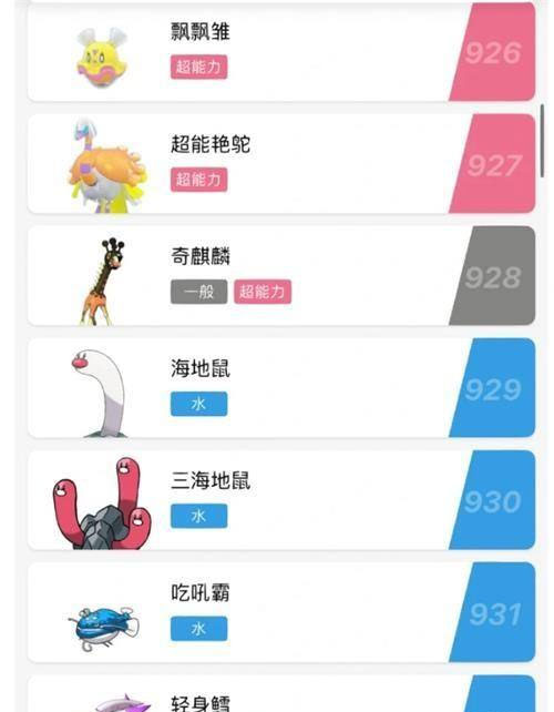 飘飘雏、超能艳鸵、奇麒麟、海地鼠、三海地鼠、吃吼霸、轻身鳕、波普海豚、海豚侠、迷你芙