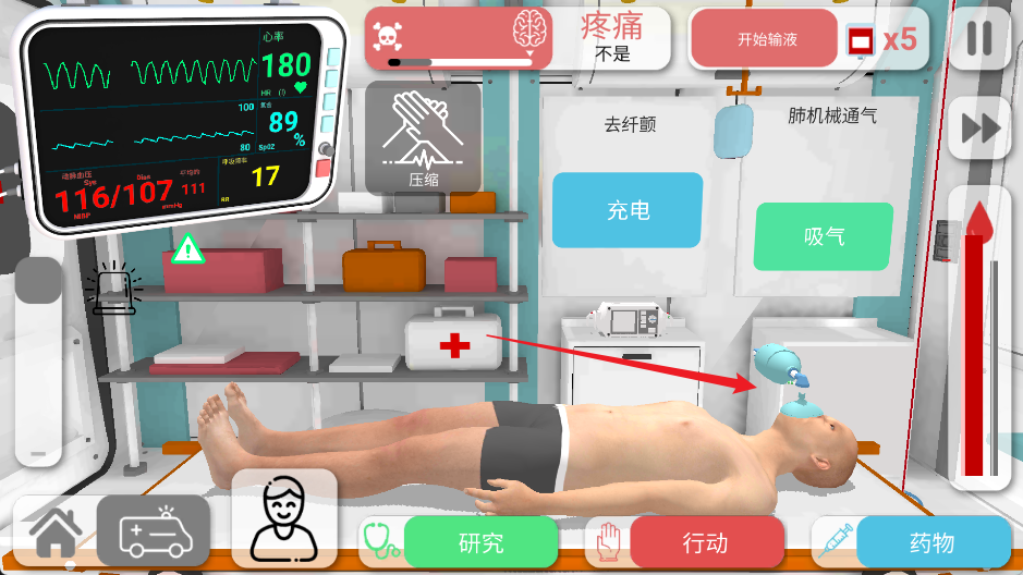 康复公司推出的汉化版解决了原版英文的问题,让操作更直观。比如使用除颤器、解读心电图这些步骤变得清晰明了,降低了学习门槛,也增加了游戏的沉浸感。