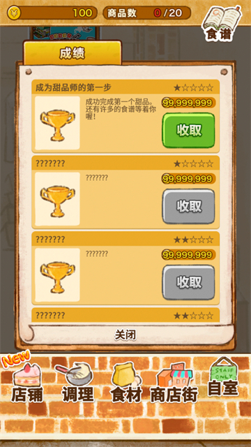 游戏中还有一个农场,可以种植和收获食材,这一点挺方便的。另外,前期买厨具非常重要,因为它会影响后续制作甜点的效率。破解版的好处就是赠送大量金币,过完教程后在“自习-成绩”里就能领取。