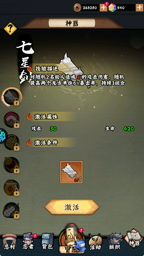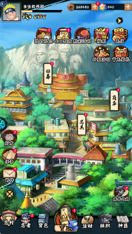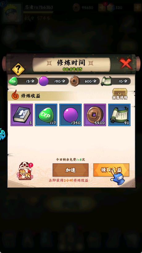 最后再把招财活动点满。免费和40招财两个都建议拉满,最后忍具合成一下。基本一天的游戏已经完成95%了!