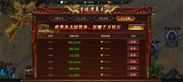 首次击杀BOOS可领取各种奖励,收集各大陆装备,狂赚千万钻石。