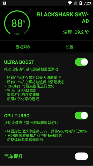 3、在设置界面将【ULTRA BOOST、GPU TURBO】全部打开