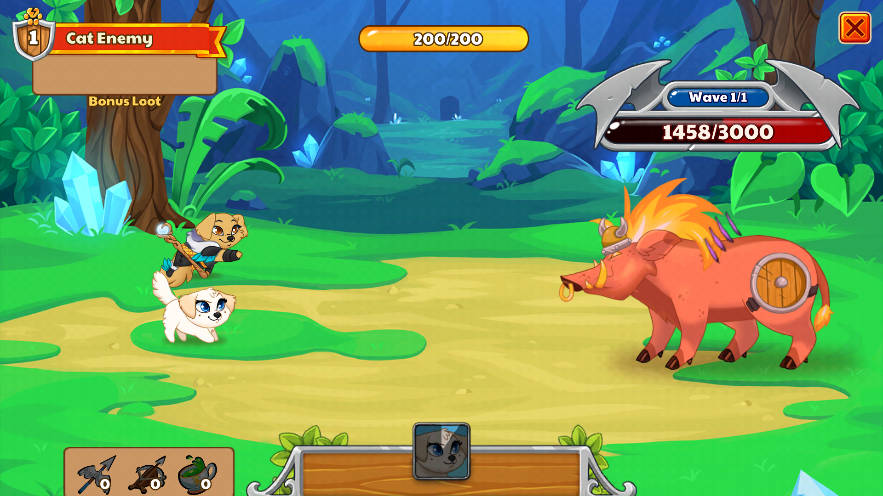 游戏中有超过45种不同风格的狗狗可供收集,每只都有独特的技能和特点,可以自由搭配队伍策略。通过完成任务和战斗,你可以为这些狗狗解锁新的技能和装备,打造属于自己的强力团队。游戏的画面非常可爱,剧情也充满了幽默感,尤其是猫狗之间的天生敌对关系,让整个冒险更有代入感。