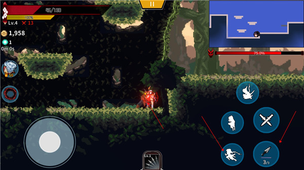 玩的时候,我发现游戏的操作感很强,尤其是连击combo和一闪技能的设计,非常考验玩家的手速和策略。传送门的功能也挺有意思的,看似可以跳关,实则是通向新的挑战区域。打宝箱的时候总会有惊喜,装备掉落的概率也很良心,及时捡取能让自己变得更强大。