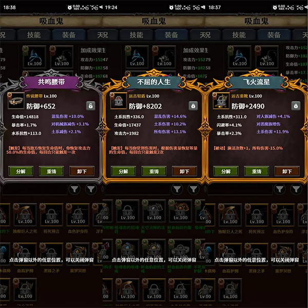 2、后期必备装备为入魔,灾变,高增伤,挂机速刷必备神器。