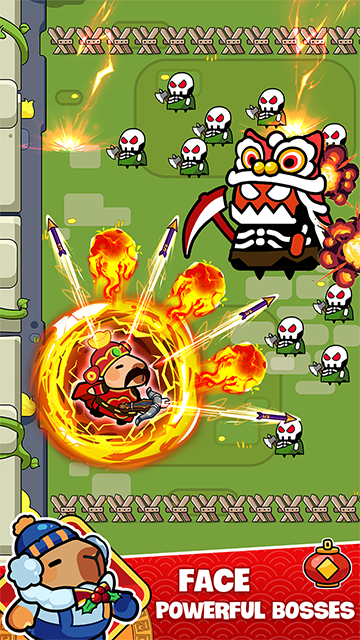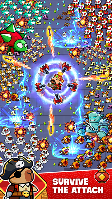 卡皮巴拉幸存者是一款令人欲罢不能的生存挑战游戏,玩家将扮演一只勇敢的卡皮巴拉,面对无穷无尽的敌人,展开一场斗智斗勇的生存冒险。丰富多样的武器和技能系统等待你去解锁,每一次任务的完成和敌人的击败都会为你积累宝贵经验值,当达到指定门槛时,你的卡皮巴拉角色将升级解锁全新技能,战斗力大幅提升。随机生成的地图设计让每次游戏体验都独一无二,未知的怪物分布和宝藏位置增加了探索乐趣,也让每一次冒险都充满惊喜。玩家需要巧妙运用策略,选择最适合的技能组合,面对越来越强的敌人攻势,成功存活下来才是最终目标。