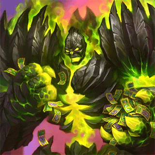 吞噬:移除一个友方随从,将它的属性值吐到另一个随从身上。获得一枚铸币。