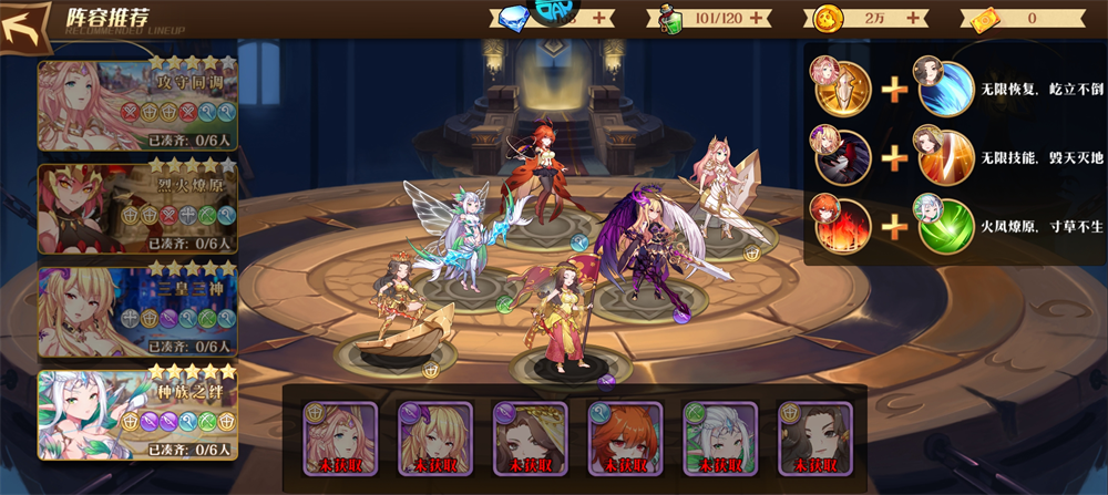 阵容组成:雅典娜+路西法+安娜+小蝴蝶+艾琳+莎利