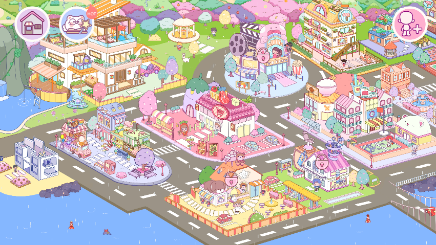 在学校、市中心、海边和郊区等各个区域建造和装饰您的梦想家园。个性化每个角落,以体现您的风格和创造力。