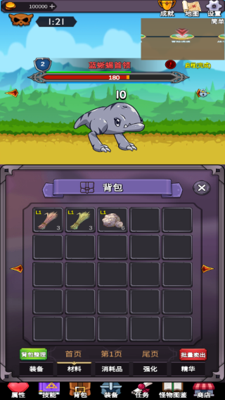 怪物被消灭会掉落物品,物品将自动进入玩家背包,无需进行拾取操作。