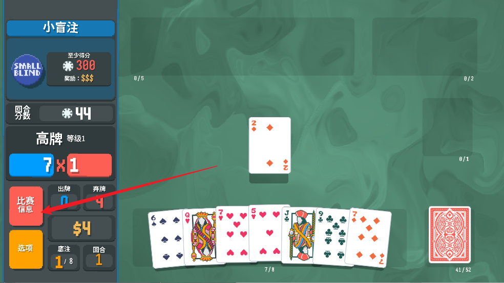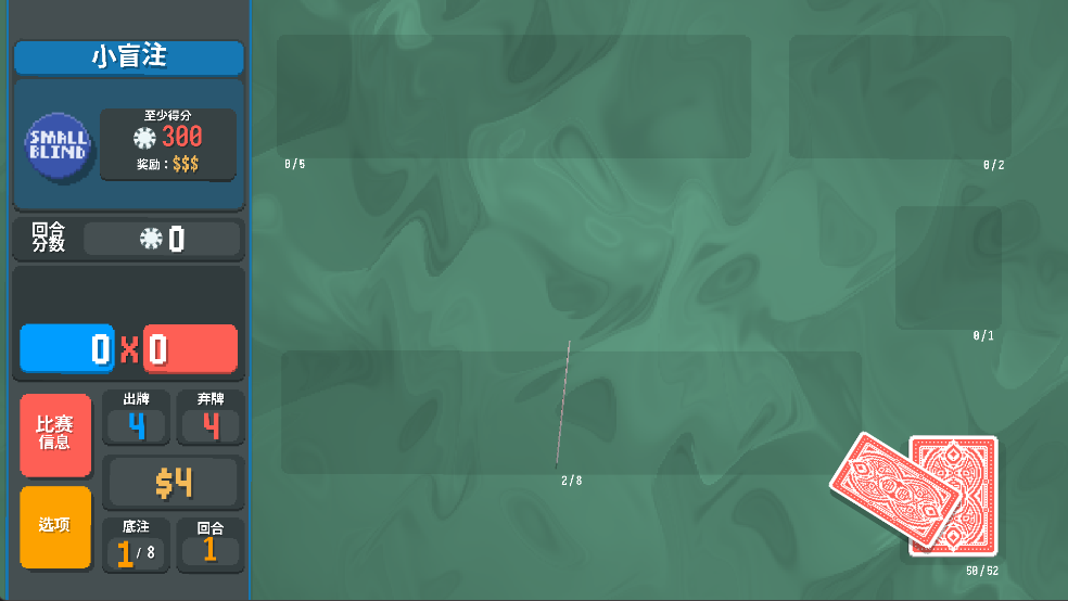 8、回合结束后若达到盲注要求相应分数即为胜利,反之即为失败。