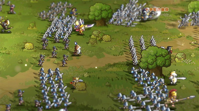 1、核心玩法就是两军对战,但战斗时并不需要玩家进行任何操作,只需要招募并培养英杰,然后在战前布阵即可。