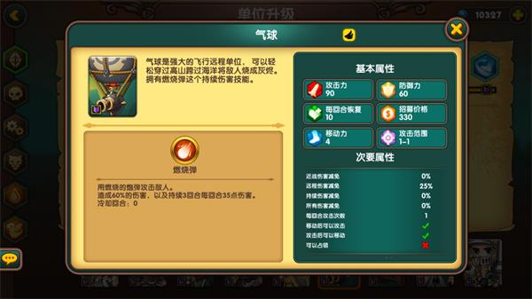 气球,人族唯一飞行单位(其他种族都是俩)在远古版本挺受欢迎,因为和法师是“好朋友”(见以前的玩家都快把这俩玩成梗了)气球作为330的兵,防御力十分出色,再加上又是空军,生存环境更好。虽然输出不是很高,但是技能叠加起来几乎没有兵可以扛得住(你强任你强,三个燃烧弹叫你狂)不过因为后面加入的空军,让气球不再是唯一一个可以跨过山河大海的兵种。自身打肉能力很好,但是伤害来的太慢了。一代是个快节奏战棋,输出还是直接打出来的实在,等燃烧弹烧掉对方重要单位,家!都!没!了!