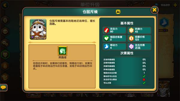老鼠,最弱基础兵了,80点攻击打骨头都费劲,125价格没双抗,用起来贼弱(如果价格是120还差不多)