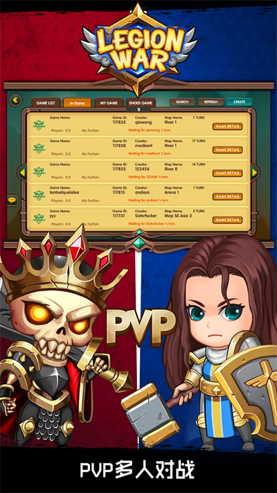 多人游戏可以同时接受或者发起5个对战,最多可以4人一局,可以自由设定是否加入AI和回合等待时间。并且可以设置是否是私人游戏,可以和自己认识的朋友一起玩。