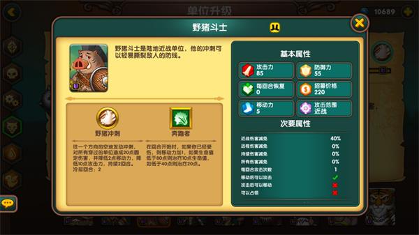 母猪(划掉),贼抗砍的兵,在平原有5/5加成,移动也快,缺点是伤害低,且不能占领(一代不能占领的近战陆地兵都弱,比如胖子,氪金,狼,骑兵)